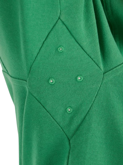 • Embroidered eyelets at underarms for venting