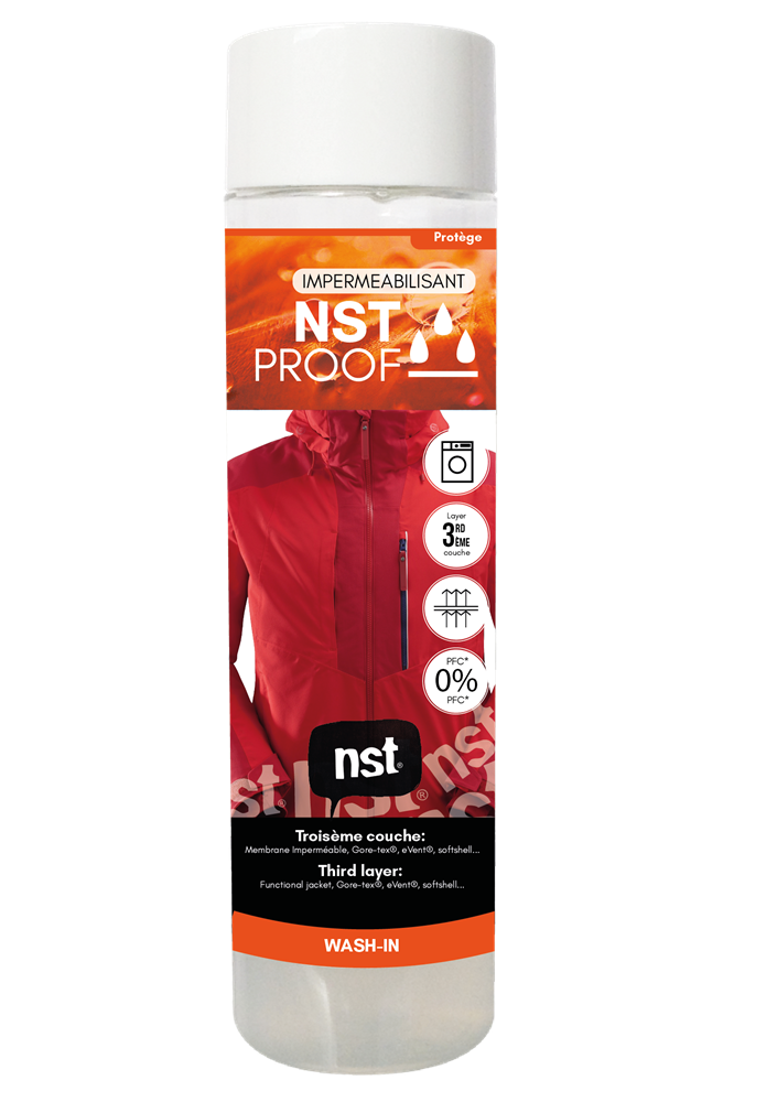 NST Proof is a water repellent treatment for all sports clothing and equipment that requires a DWR (water repellent) replacement. You stay immune to moisture in your clothes. Impregnates the fibers at the core and leaves on the surface a protective film that repels water and stains.