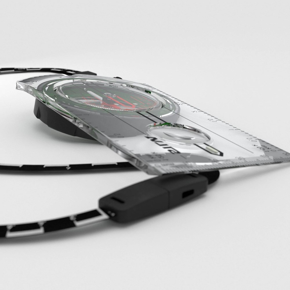 This compass model is equipped with a detachable scale lanyard that works like a ruler. The scale lanyard has two scales on it; 1:25, and 1:50, which makes it easier to measure the distance of your hike. Since its soft and bendable it’s easy to place directly on to your route on the map when you are out in the terrain – or when you are planning for your next adventure.