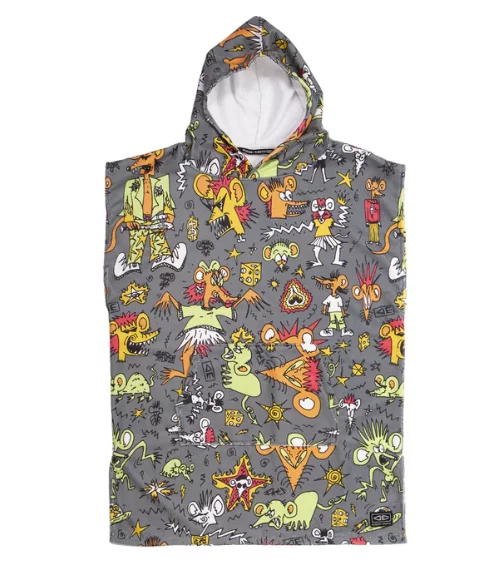 Keep your young one warm and dry with the Youth Irvine Hooded Poncho Towel. Limited edition collaboration with Australian artist Jack Irvine. With oversize sleeve openings and in Lightweight 250GSM comfy microfibre this is an easy poncho to slip in and out of after a day at the beach.